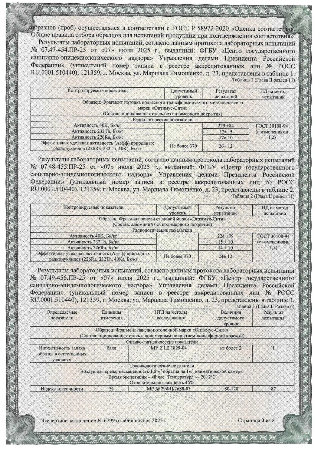 Сертификат СанПин ОПТИМУС-СИТИ № 6799 страница 3