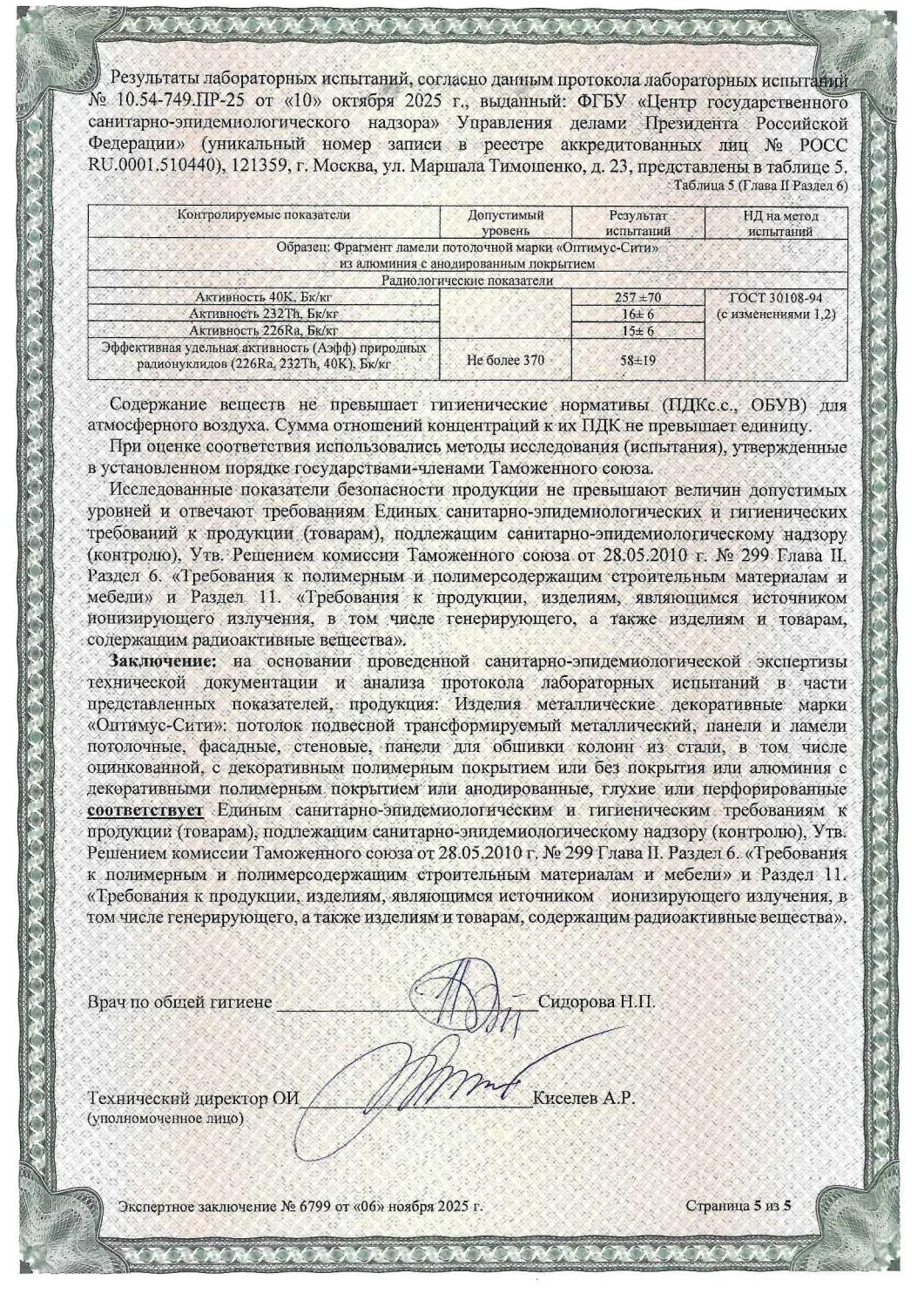 Сертификат СанПин ОПТИМУС-СИТИ № 6799 страница 5