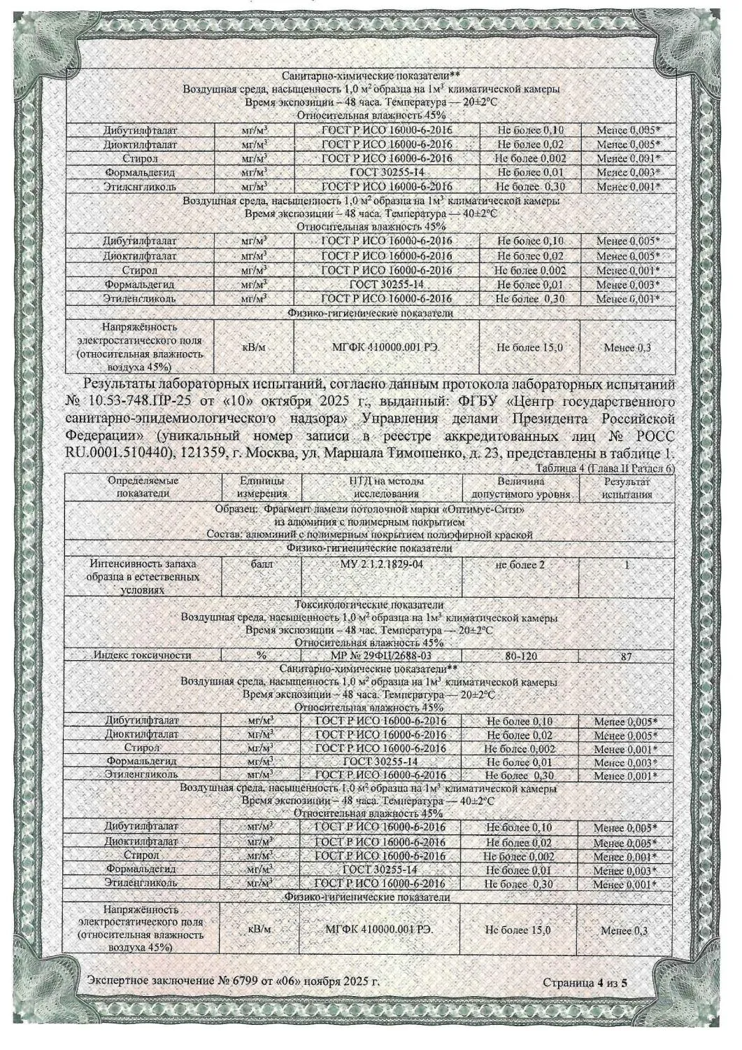 Сертификат СанПин ОПТИМУС-СИТИ № 6799 страница 4