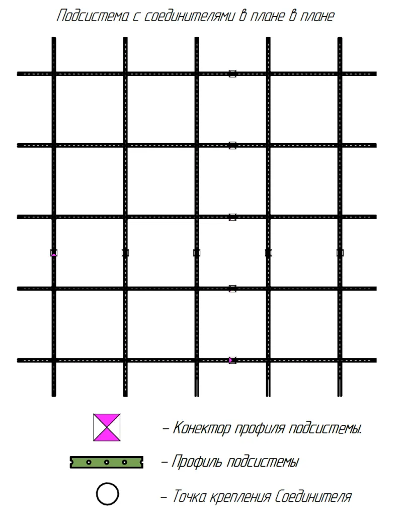 Подсистема формирует несущую сетку конструкции, а ламели устанавливаются между соединителями согласно проектной раскладке.