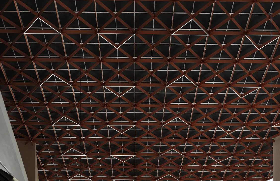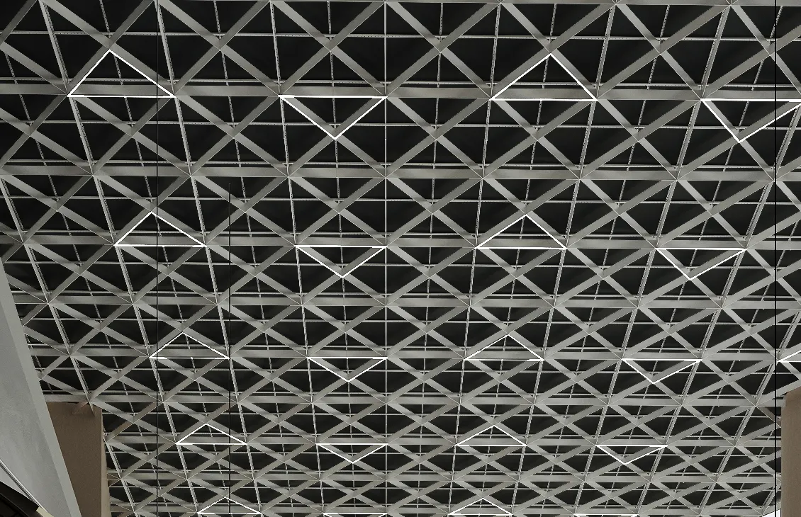 Для потолочных систем Optimus доступен широкий выбор покрытий по каталогу RAL — более 2500 оттенков, включая классические цвета, глубокие матовые решения и декоративные металлики.