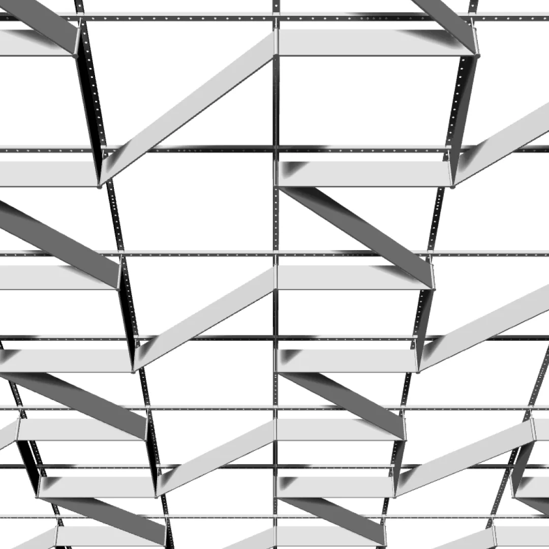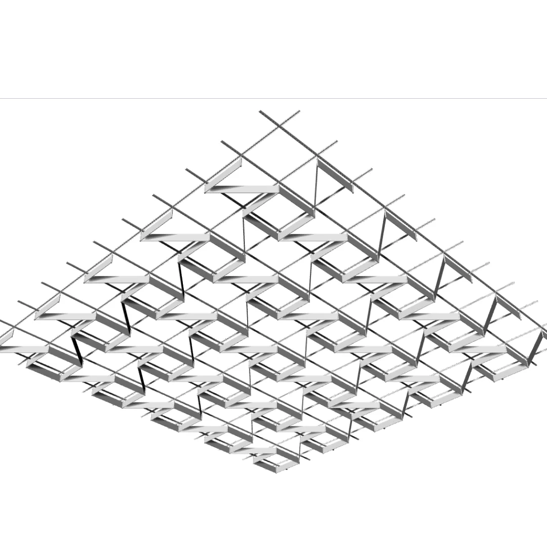 Монтаж потолочной системы ОПТИМУС выполняется поэтапно: установка шпилек крепления, сборка подсистемы, фиксация соединителей и монтаж ламелей согласно проектной раскладке. Конструкция разработана для быстрой сборки, точной геометрии и удобного доступа к инженерным коммуникациям.