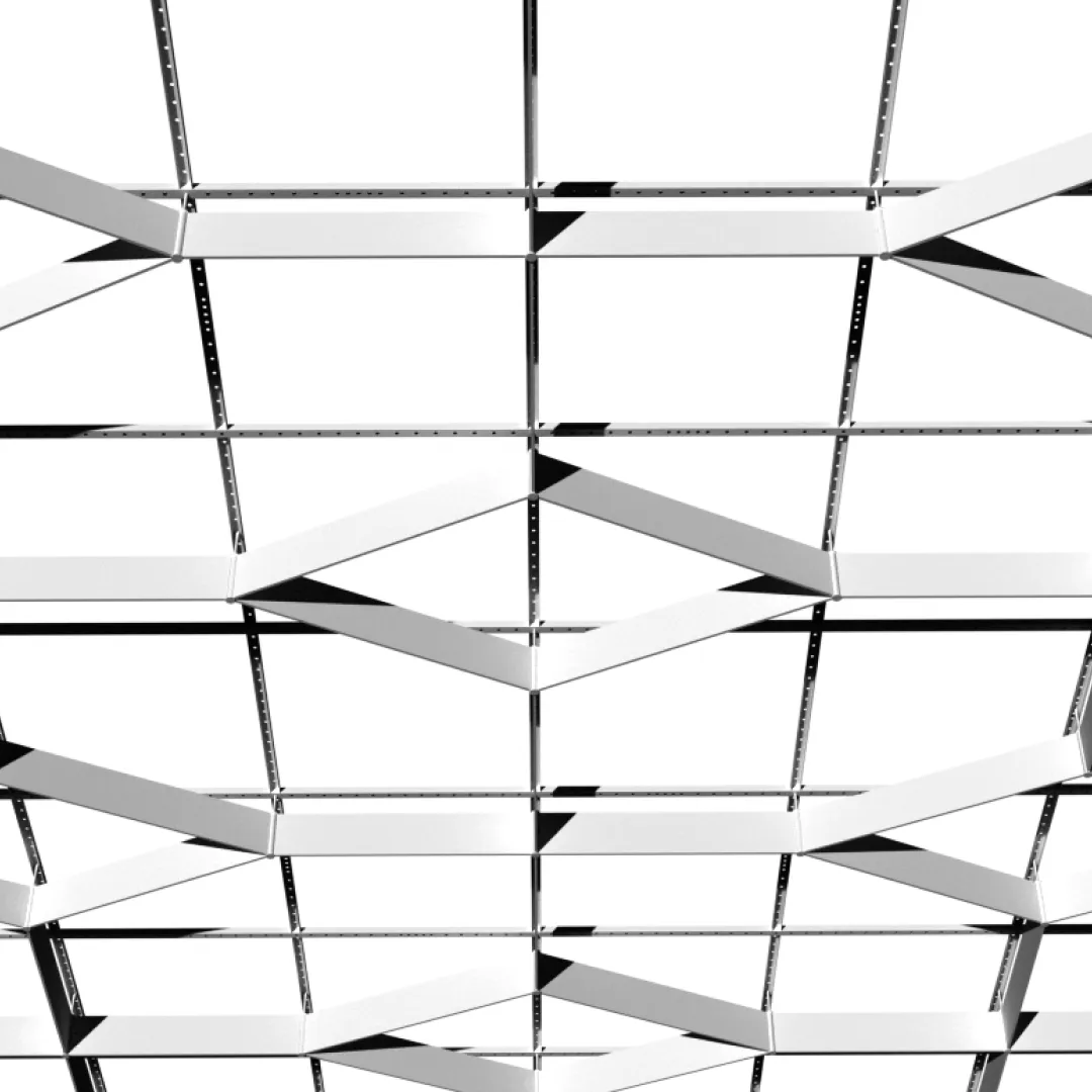 Система применяется в аэропортах, вокзалах, торговых центрах, атриумах, общественных пространствах и административных комплексах, где требуется декоративное потолочное решение большого формата.