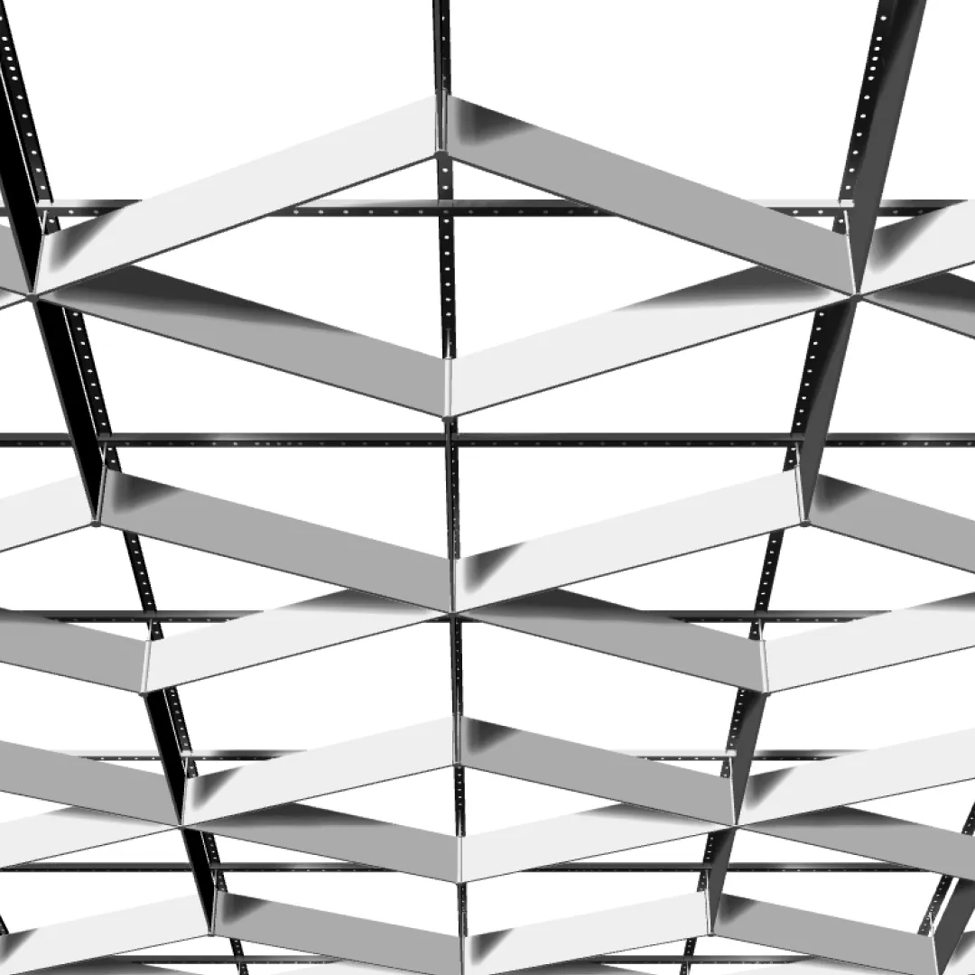 Система применяется в аэропортах, вокзалах, торговых центрах, атриумах, общественных пространствах и административных комплексах, где требуется декоративное потолочное решение большого формата.