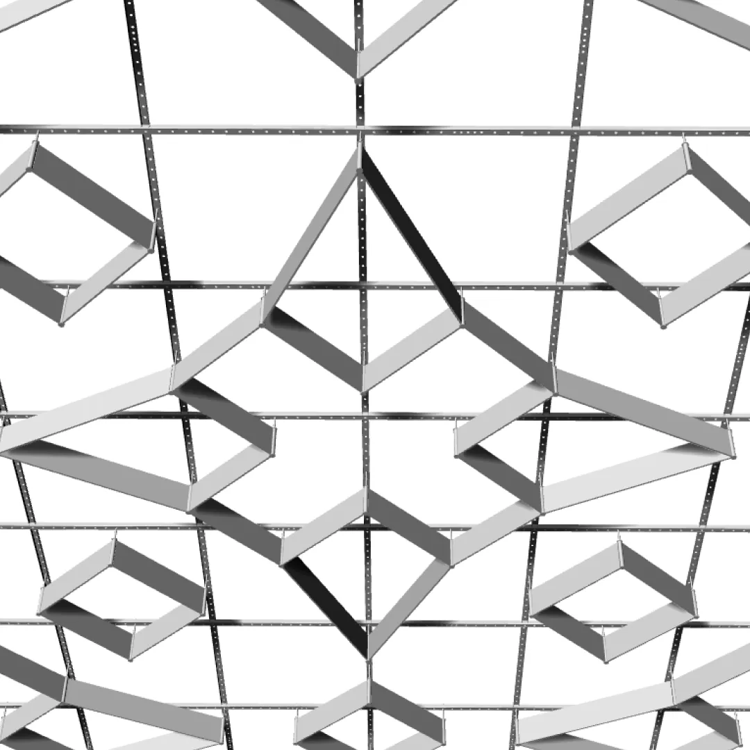 Монтаж потолочной системы ОПТИМУС выполняется поэтапно: установка шпилек крепления, сборка подсистемы, фиксация соединителей и монтаж ламелей согласно проектной раскладке. Конструкция разработана для быстрой сборки, точной геометрии и удобного доступа к инженерным коммуникациям.