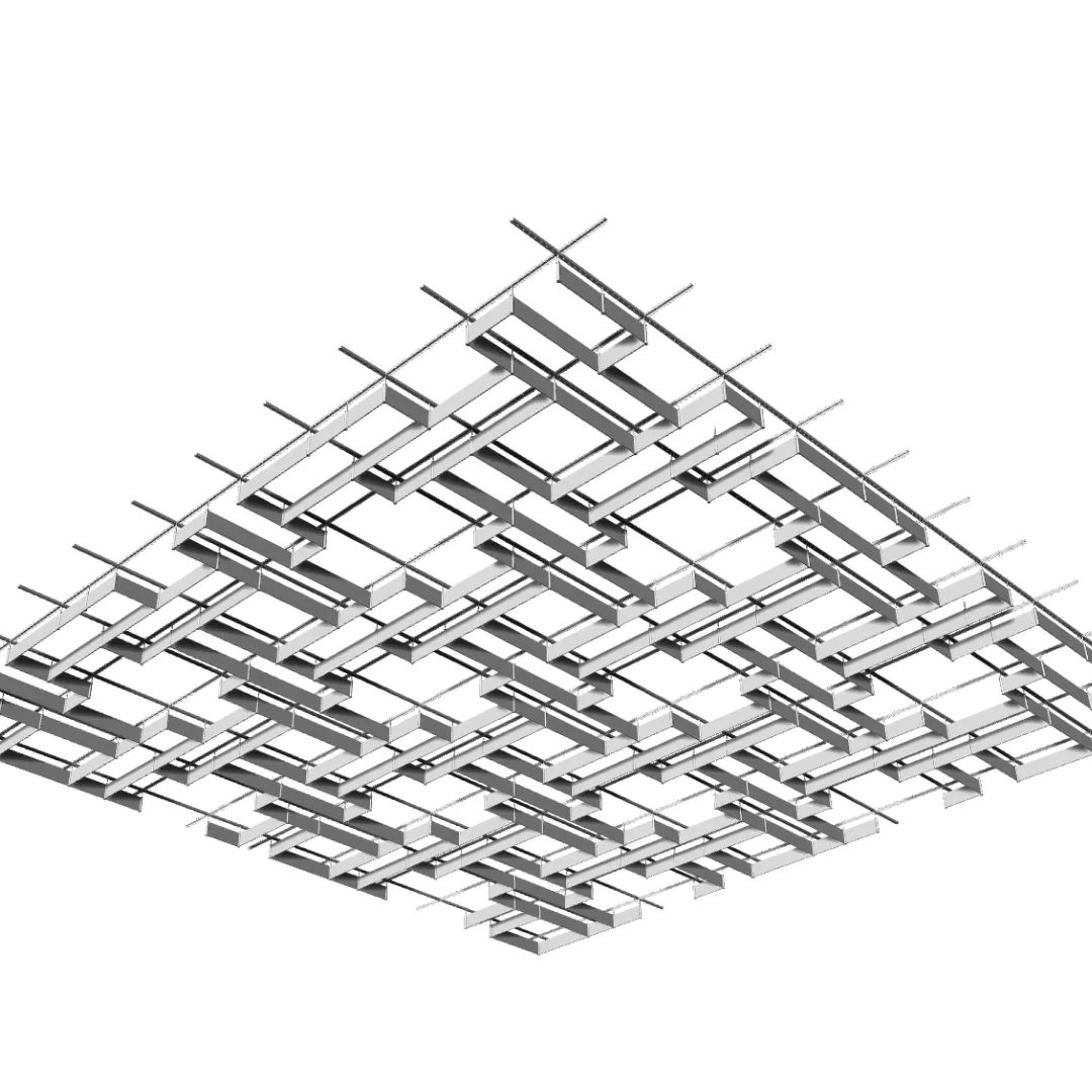 Модель используется в проектах, где необходим подвесной потолок с анодированной поверхностью, плотной геометрией и стабильными эксплуатационными характеристиками.