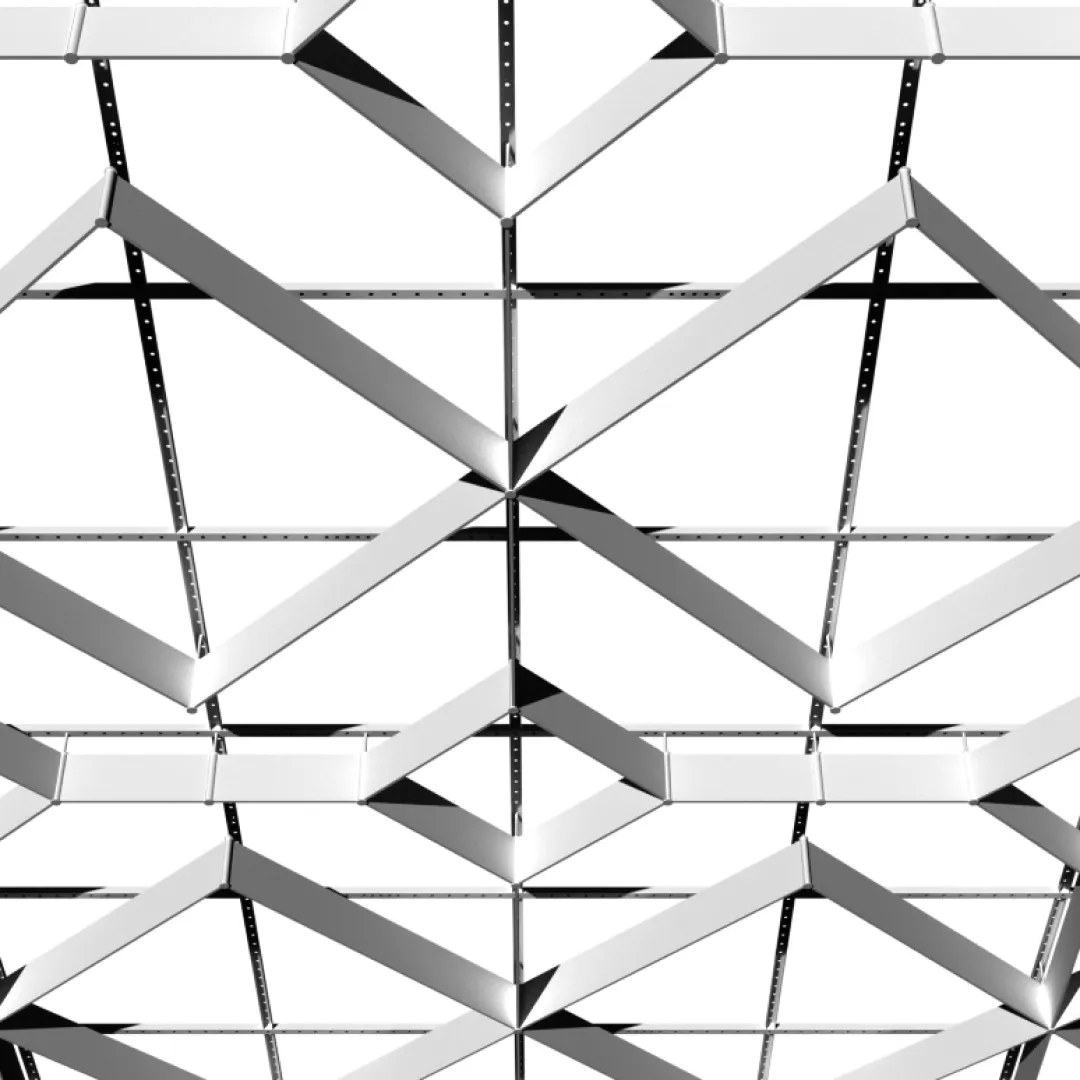 Монтаж потолочной системы ОПТИМУС выполняется поэтапно: установка шпилек крепления, сборка подсистемы, фиксация соединителей и монтаж ламелей согласно проектной раскладке. Конструкция разработана для быстрой сборки, точной геометрии и удобного доступа к инженерным коммуникациям.