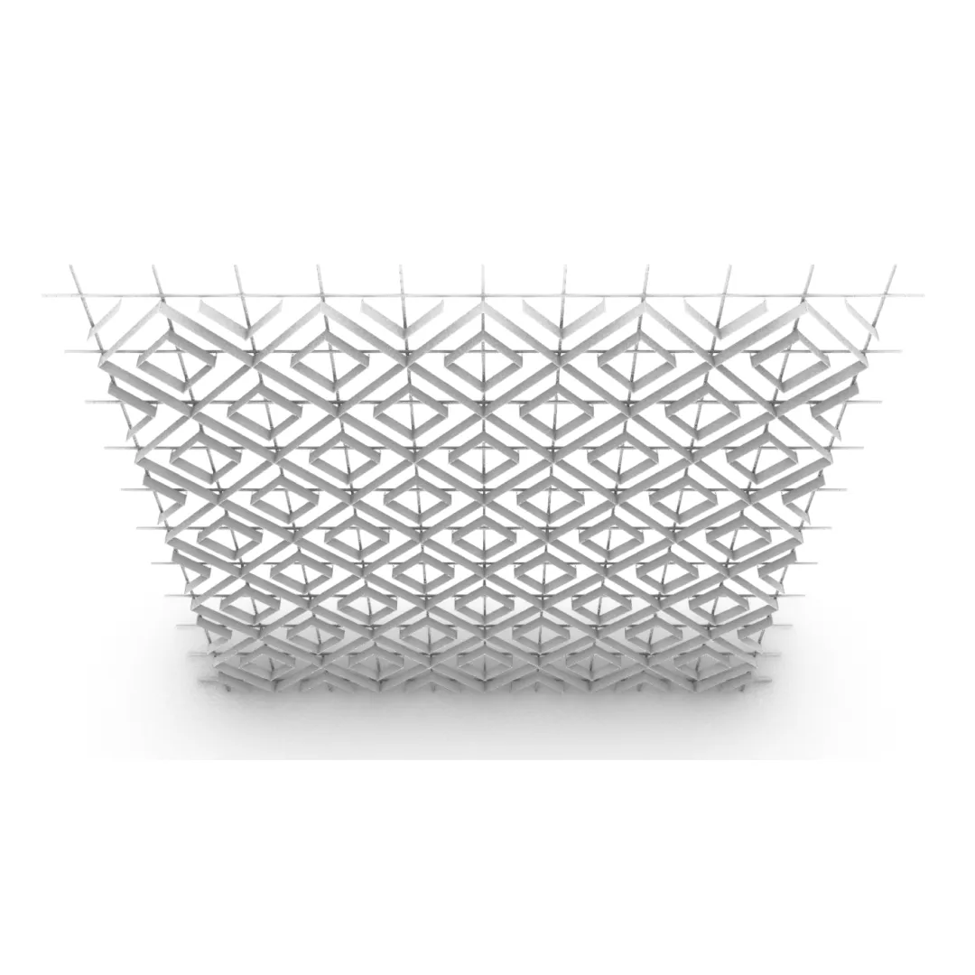 Модель используется в проектах, где необходим подвесной потолок с декоративной поверхностью, стабильной геометрией и длительным сроком эксплуатации.