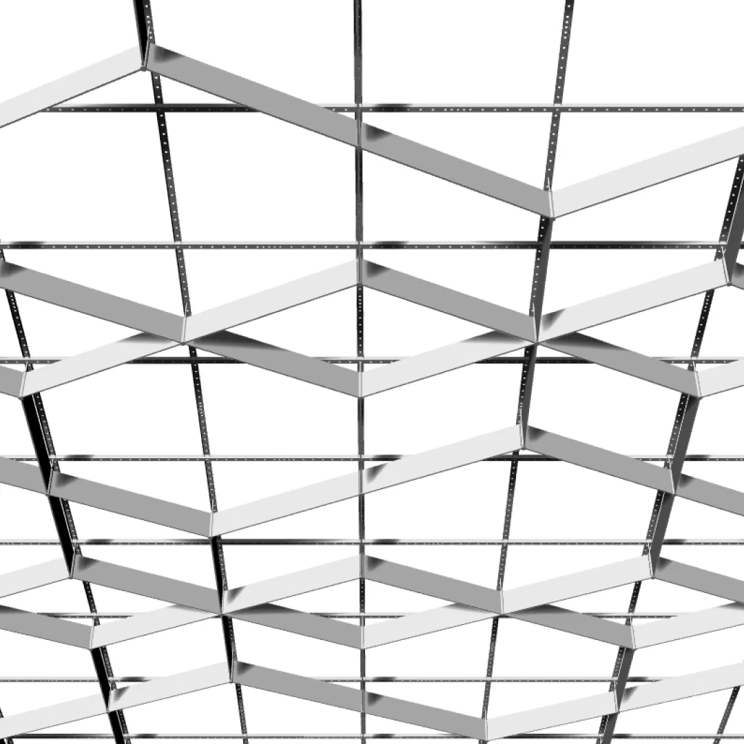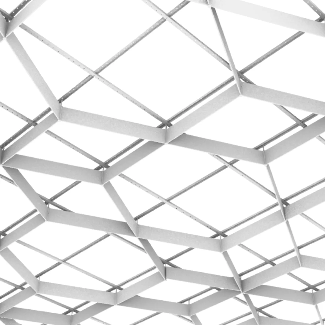 Модель используется в проектах, где необходим подвесной потолок с устойчивым полимерным покрытием, насыщенной геометрией и длительным сроком эксплуатации.