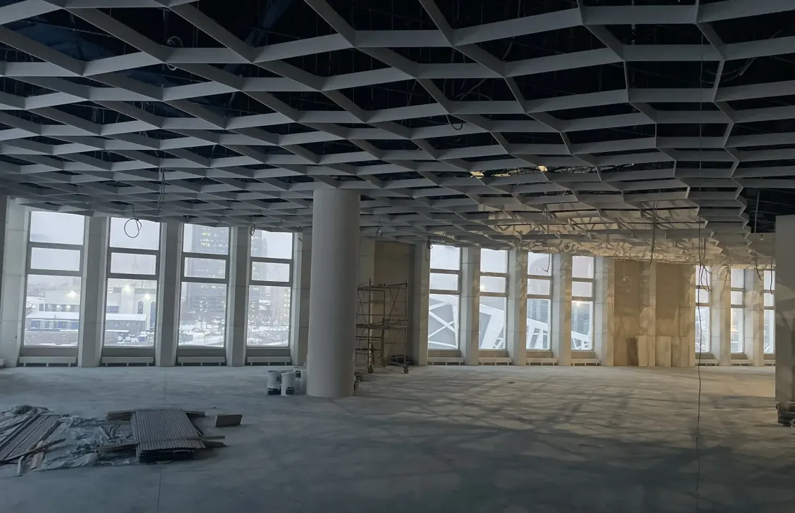 Для Екатеринбургского государственного цирка имени В. И. Филатова выполнен монтаж металлической потолочной системы Optimus City с регулярной геометрией модулей. Конструкция формирует выразительный потолочный ритм, подчёркивает масштаб пространства и обеспечивает удобный доступ к инженерной инфраструктуре.